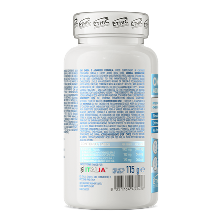 Ethic Nutraceutici Omega 3 Advanced Formula is a dietary supplement with polyunsaturated omega-3 fatty acids, developed for people looking for a proven source of these ingredients in their daily diet. The product is a practical supplement to the diet, responding to the needs of consumers who pay attention to the quality, bioavailability, and safety standards of the supplements they use.