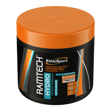EthicSport Ramtech® Hydro is a dietary supplement in powder form with a refreshing orange-lemon flavor. The product has been developed for athletes and people who train intensively and want to supplement their diet with BCAA amino acids, beta-alanine, and selected vitamins and minerals.