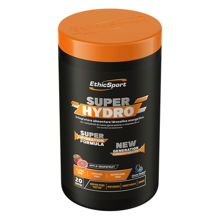 EthicSport Super Hydro is a dietary supplement in powder form with a refreshing apple and grapefruit flavor, designed for physically active people and athletes as a supplement to their diet with carbohydrates, vitamins, and minerals.