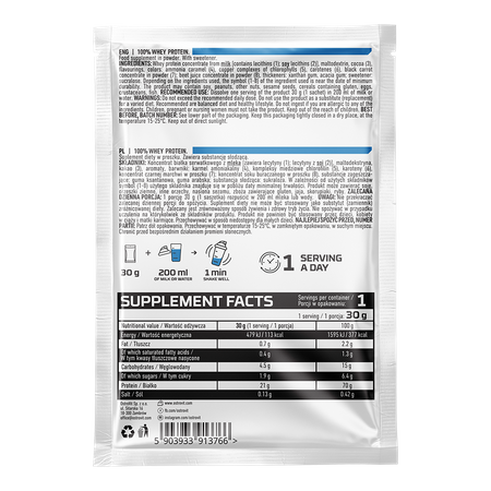 Among the ingredients of OstroVit 100% Whey Protein is also maltodextrin, a compound belonging to the group of polysaccharides, which is a product obtained by partial hydrolysis of starch. It is an easily digestible substance and a source of well-absorbed energy.