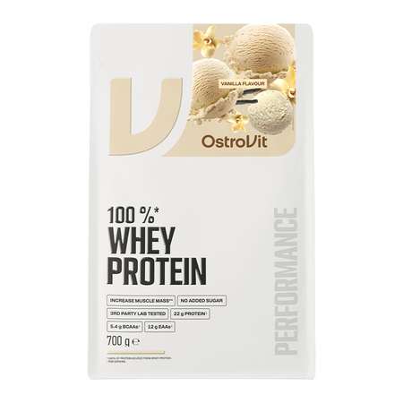 Whey protein is made from whey, which is a by-product of cheese production. It is an animal source of protein, which is used by physically active people, regardless of their training goal, level of training and experience. There are three types of whey protein - whey protein concentrate (WPC), whey protein hydrolysate (WPH) and whey protein isolate (WPI). OstroVit 100% Whey Protein uses whey protein concentrate from milk, which is distinguished by good solubility, excellent assimilability and short absorption time, which has a positive effect on the quality of supplementation.