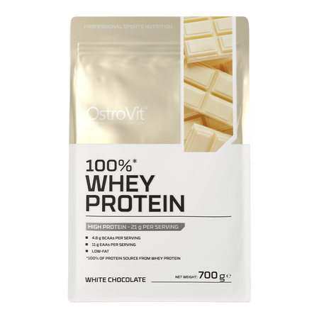 OstroVit 100% Whey Protein is a dietary supplement that is a source of whey protein concentrate, containing as much as 70% of high-quality proteins. It is a preparation that provides the body with branched-chain amino acids BCAA, as well as essential EAA amino acids. It is a low-fat product, available in powder form in various flavors, which was created for athletes and people who want to supplement their daily diet with a valuable macronutrient.