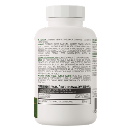 - Contains extract from the ground part of alfalfa - one portion of the food supplement provides the body with 500 mg of alfalfa extract.