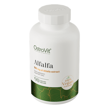 OstroVit Alfalfa VEGE is a high-quality dietary supplement containing alfalfa seed extract. It is a vegan preparation that is available in the form of easy-to-swallow capsules and is intended for people who want to supplement their daily diet with valuable ingredients.