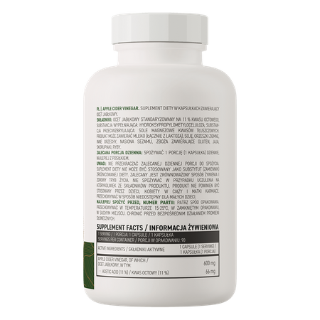 OstroVit Apple Cider Vinegar is a high-quality dietary supplement that is a source of apple cider vinegar standardized to 11% acetic acid. It is a vegan preparation available in the form of easy-to-swallow capsules, created for people who care about a healthy and beautiful appearance, as well as to supplement the daily diet with a valuable compound.