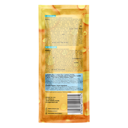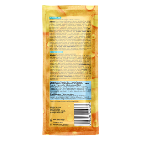 OstroVit Aqua Kick ADEK is a dietary supplement that is a source of fat-soluble vitamins such as vitamin A, vitamin D and vitamins E and K. It is a modern preparation with a unique, orange taste, which is available in convenient sachet form. It is a product created for physically active people, which enables a trouble-free supply of valuable micronutrients.