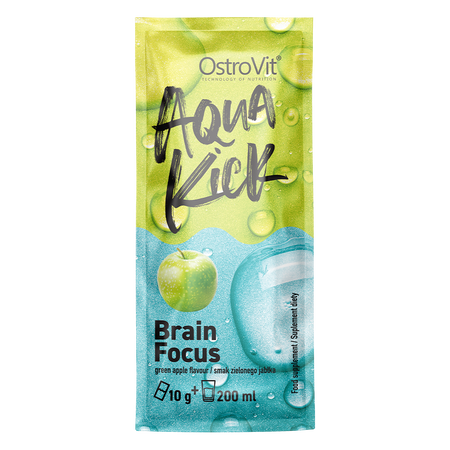 OstroVit Aqua Kick Brain Focus is a comprehensive dietary supplement that contains inositol, choline bitartrate, ashwagandha root extract, as well as vitamin B6 and B12. It is a preparation with a delicious green apple flavor, available in the form of a sachet with water-soluble powder. It is a product designed for people who care about proper brain function and proper cognitive function.