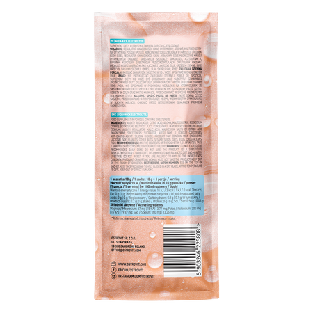 OstroVit Aqua Kick Electrolytes is a high-quality dietary supplement that contains a set of valuable electrolytes. It is a preparation available in the form of a handy sachet with a delicious peach flavor. This is a product created for physically active people who want to supplement their daily diet with valuable compounds.