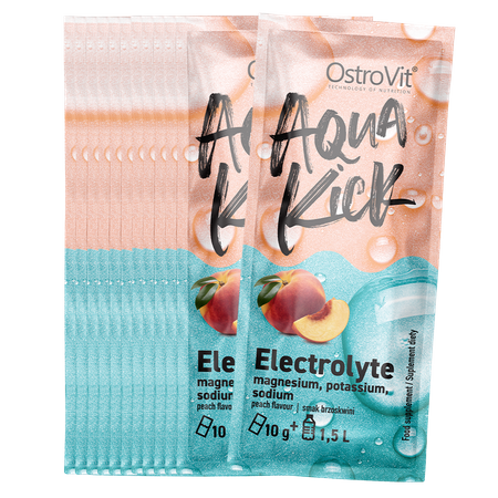 OstroVit Aqua Kick Electrolytes is a high-quality dietary supplement that contains a set of valuable electrolytes. It is a preparation available in the form of a handy sachet with a delicious peach flavor. This is a product created for physically active people who want to supplement their daily diet with valuable compounds.