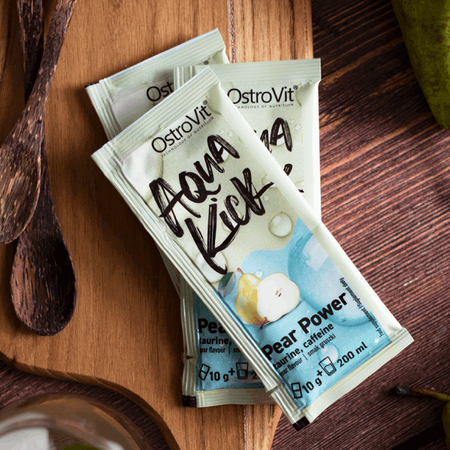 OstroVit Aqua Kick Pear Power is a high-quality dietary supplement that is a source of two valuable ingredients - caffeine and taurine. It is a preparation with a delicious, pear-like taste, available in a convenient powder form. This is a product created for athletes and people who want to stimulate their body.