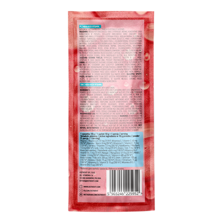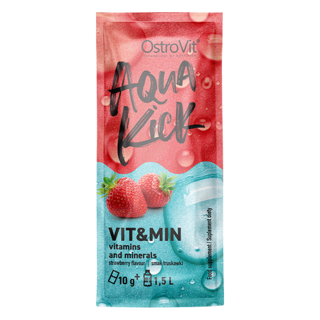 OstroVit Aqua Kick VIT&MIN is a comprehensive dietary supplement, that is a source of valuable vitamins and minerals. It is a preparation with a delicious, strawberry flavour, available in a sachet in the form of a water-soluble powder. It is a product designed for people who want to supplement the daily diet with valuable micronutrients.