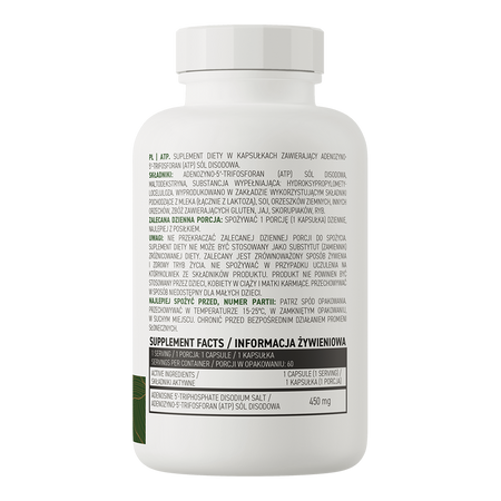 - ATP Source - One serving of the dietary supplement provides the body with 450 mg of adenosine-5'-triphosphate in the form of disodium salt.