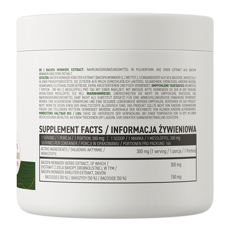 OstroVit Bacopa Monnieri Extract is a high-quality dietary supplement that contains an extract from the whole plant of bacopa monnieri standardized to 50% bacosides. It is a preparation with a simple formulation available in a convenient powder form. It is a product created for people who care about supplementing their daily diet with natural, valuable ingredients.