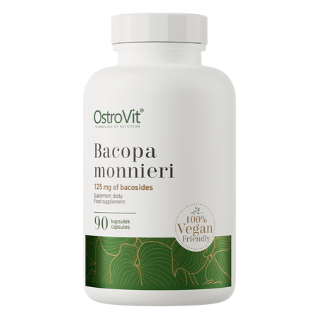 OstroVit Bacopa Monnieri VEGE is a high-quality dietary supplement containing Bacopa monnieri herb extract standardized to 50% bacosides. It is a vegan preparation, available in the form of easy-to-swallow capsules, created for people who care about supplementing their daily diet with natural and valuable ingredients.