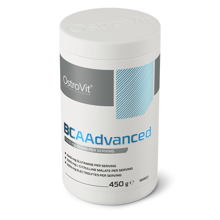 OstroVit BCAAdvanced is a high-quality dietary supplement that provides a source of BCAA amino acids, as well as L-glutamine, L-citrulline, vitamin B6 and valuable electrolytes - potassium, magnesium, sodium and chloride. It is a formula without added sugar, available in powder form, in four different flavors. This is a product that will be great as a dietary supplement among athletes and physically active people.