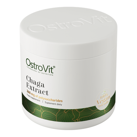 OstroVit Chaga Extract is a high-quality dietary supplement, which contains an extract of chaga mushroom standardized to 40% polysaccharides. This is a preparation with a simple composition that does not contain unnecessary additives, available in a convenient powder form. This product is recommended among people who care about supplementing their daily menu with valuable compounds.