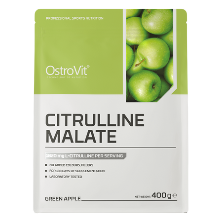OstroVit Citrulline is a high-quality dietary supplement containing citrulline malate. It comes in the form of a green apple-flavoured powder and contains no added sugar. This product has been designed for athletes and physically active people who wish to supplement their diet with valuable nutrients.