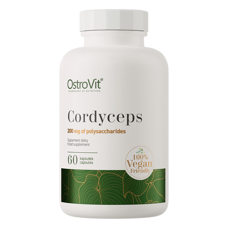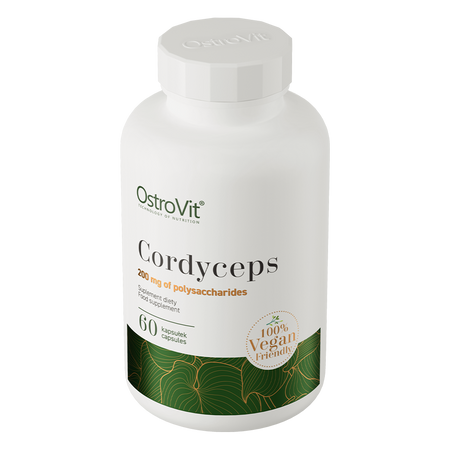 OstroVit Cordyceps Vege is a high-quality dietary supplement that contains Cordyceps chinensis mushroom extract standardized to 40% DER 30:1 polysaccharides. It is a vegan preparation, available in the form of easy to swallow capsules. It is a product created for people who want to supplement their daily diet with valuable, natural ingredients.
