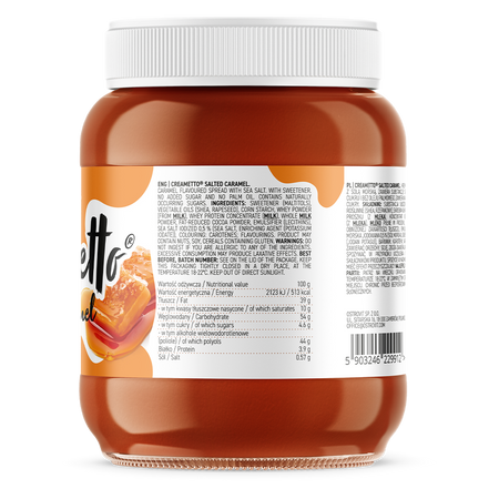 Cream with salty caramel flavour that does not contain added sugar and palm oil