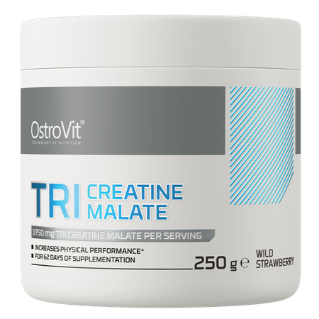 OstroVit uses creatine malate, i.e. combination of creatine molecule with malic acid in a 1:3 ratio. It is one of the most soluble forms of the compound, which is distinguished by high stability and resistance to gastric enzymes, as well as excellent assimilability in the human body. Creatine malate contributes to water retention in the body to a much lesser extent than monohydrate, which makes it very popular among athletes of various disciplines.