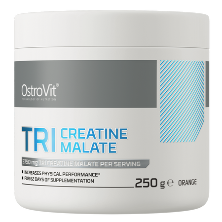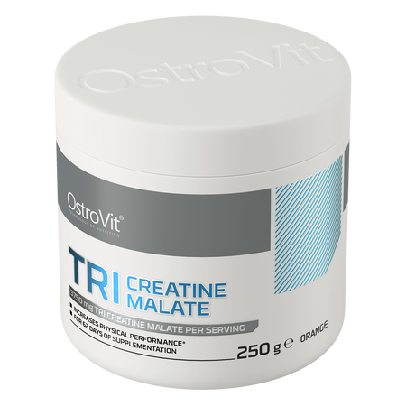 OstroVit uses creatine malate, i.e. combination of creatine molecule with malic acid in a 1:3 ratio. It is one of the most soluble forms of the compound, which is distinguished by high stability and resistance to gastric enzymes, as well as excellent assimilability in the human body. Creatine malate contributes to water retention in the body to a much lesser extent than monohydrate, which makes it very popular among athletes of various disciplines.