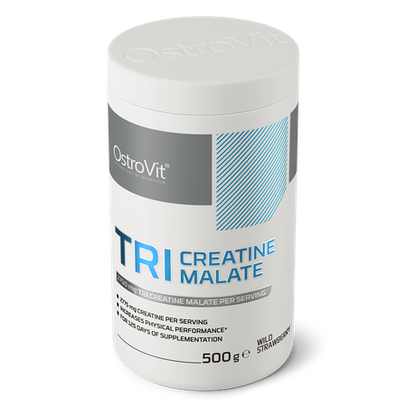 OstroVit uses creatine malate, i.e. a combination of creatine molecule with malic acid in a 1:3 ratio. It is one of the most soluble forms of the compound, which is distinguished by high stability and resistance to gastric enzymes, as well as excellent assimilability in the human body. Creatine malate contributes to water retention in the body to a much lesser extent than monohydrate, which makes it very popular among athletes of various disciplines.
