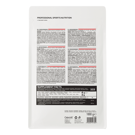 OstroVit uses creatine monohydrate, i.e. a combination of a creatine molecule with a water molecule into one molecule - because creatine is a hydrophilic compound, it combines with water without any problems, and thus is a substance that is distinguished by excellent assimilability. Creatine monohydrate is the simplest form of creatine in terms of structure and at the same time the compound that is the most popular among athletes - it is perfect for both beginners and professionals, which is due to the fact that creatine increases physical performance in the case of successive, short, very intense physical exercises, and beneficial effect occurs when consuming 3 g of creatine per day.
