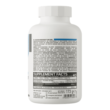 OstroVit Creatine Monohydrate is a high-quality dietary supplement that contains creatine in the form of monohydrate. It is a preparation available in the form of easy-to-swallow tablets, designed for athletes and physically active people who want to supplement the diet in a valuable compound.
