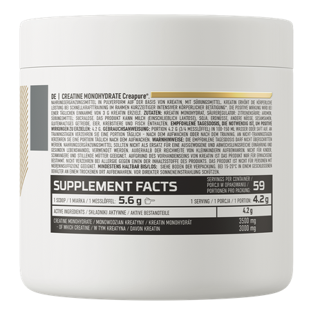 OstroVit uses creatine monohydrate, which is the combination of a creatine molecule with a water molecule into a single molecule - since creatine is a hydrophilic compound, it easily combines with water, and thus is a substance that stands out for its excellent bioavailability. Creatine monohydrate is, in terms of structure, the simplest form of creatine and, at the same time, the compound that is most popular among athletes - it will be perfect for beginners of active lifestyle enthusiasts as well as professionals, which is due to the fact that creatine increases physical performance in case of consecutive short, very intensive physical exercises, and the beneficial effect occurs when 3 g of creatine is consumed daily.
