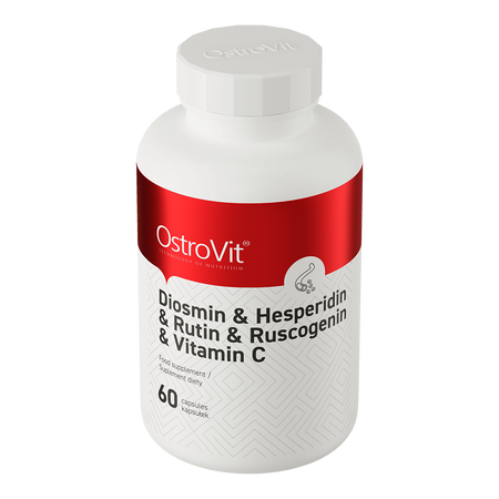 OstroVit Diosmin + Hesperidin + Rutin + Ruscogenin + Vitamin C is a dietary supplement that is a unique combination of micronized diosmin, bitter orange fruit extract, ruscus rhizome extract, Japanese pagoda tree flower extract, and L-ascorbic acid. It is available in the form of easy-to-swallow capsules, intended for people who want to support their body's daily functioning.