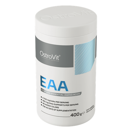 EAA (Essential Amino Acids) are essential amino acids, i.e. substances that are not naturally synthesized in the human body, therefore they must be supplied to the body from outside, along with the daily menu or in the form of dietary supplements. Essential essential amino acids include branched-chain amino acids, known as BCAAs, which include L-leucine, L-isoleucine and L-valine, as well as valuable substances such as L-lysine, L-threonine, L-phenylalanine, L-methionine, L-arginine, L-histidine and L-tryptophan.