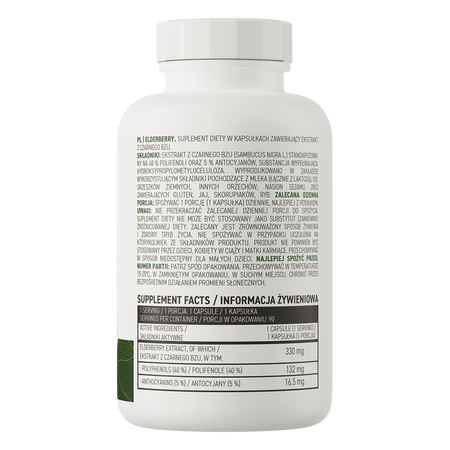 - The source of valuable ingredients - One serving of the dietary supplement provides the body with 330 mg of black elderberry extract standardized to 40% polyphenols and 5% anthocyanins.