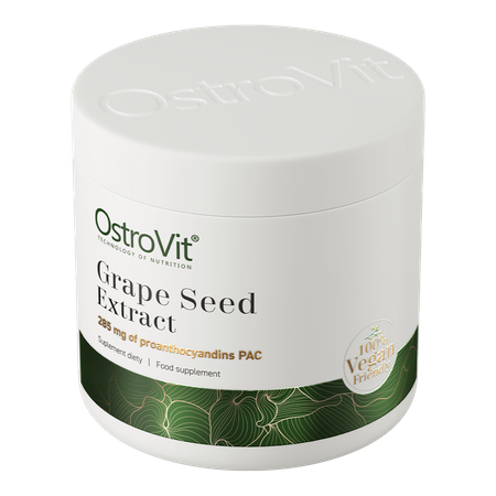 OstroVit Grape Seed Extract is a dietary supplement that contains grape seed extract standardized to 95% proanthocyanidins (PAC). It is a high-quality preparation available in a convenient powder form, created for athletes and conscious consumers who care about supplying the body with valuable substances.