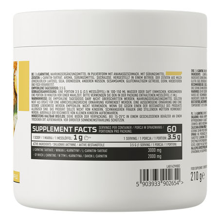 OstroVit L-Carnitine is a dietary supplement, which is a source of high-quality L-carnitine tartrate. It is a preparation available in a powder form, with a unique, pineapple flavour. It is a product designed for athletes and people who care about a healthy and beautiful appearance.