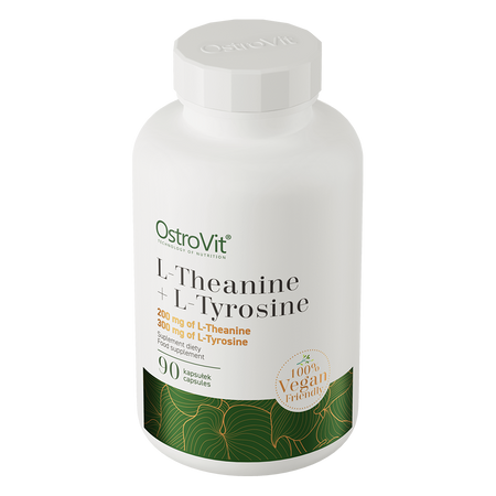 OstroVit L-Theanine + L-Tyrosine VEGE is a high-quality dietary supplement that is a set of two valuable amino acids - L-theanine and L-tyrosine. It is a vegan preparation, available in the form of easy-to-swallow capsules, created for people who want to supplement their daily diet with valuable compounds.