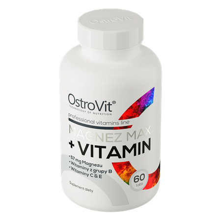 OstroVit Magnesium MAX + Vitamins is a comprehensive dietary supplement that contains magnesium and valuable vitamins. It is a preparation available in the form of easy-to-swallow tablets, designed for people who want to supplement their daily diet with valuable compounds.