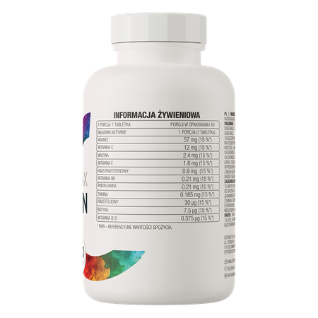 - Contains vitamin complex - in the preparation you can also find vitamin C, vitamin E and B vitamins - niacin, thiamin, riboflavin, folic acid, biotin, pantothenic acid, vitamin B6 and B12.
