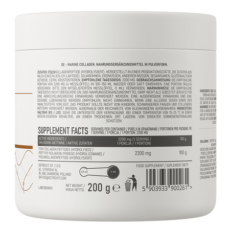 OstroVit Marine Collagen is a high-quality dietary supplement, which is a source of marine collagen type I, a form of compound that is distinguished by excellent absorption in the human body. It is a powder preparation, available in different flavors, created for conscious consumers who want to supplement their daily diet with a valuable compound.