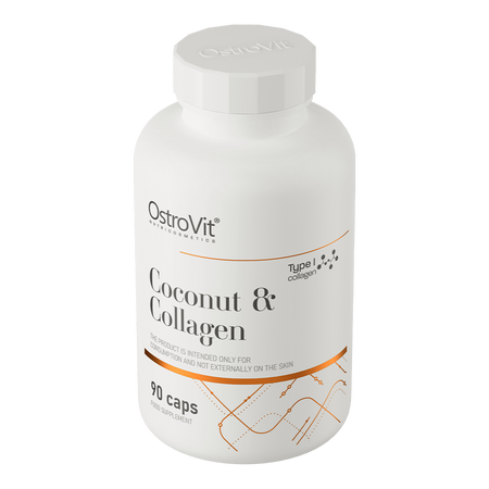 OstroVit Marine Collagen + MCT Coconut Oil is a dietary supplement, which is a source of three valuable active ingredients, such as marine collagen type I MCT oil obtained from coconut oil and vitamin C. It is a preparation available in the form of easy-to-swallow capsules, which is great as a supplement to the daily diet among physically active people and those who care about a healthy and beautiful appearance.