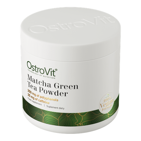 The matcha green tea leaf powder extract used in OstroVit is standardized for its polyphenol and caffeine content, which has a positive effect on the quality of the dietary supplement and ensures an equal portion of valuable bioactive compounds in each serving of the product.