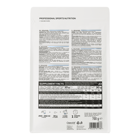 OstroVit Micellar Casein is a high-quality dietary supplement that is a source of micellar casein. It is a preparation with a simple composition and natural flavour, available in a convenient powder form. It is a product designed for athletes and people who are distinguished by increased demand for proteins.