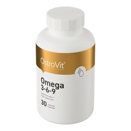 OstroVit Omega 3-6-9 is a dietary supplement that is a source of valuable omega-3 unsaturated fatty acids, as well as omega-6 and omega-9, and additionally provides the body with vitamin E. It is a preparation in the form of easy-to-swallow capsules, which is recommended especially for people with an increased demand for the above-mentioned compounds.