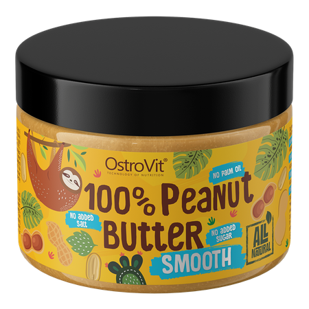 OstroVit 100% Peanut Butter is 100% made from peanuts. It does not contain salt, sugar and palm oil. Peanut nuts, also called earthnuts, stand out among other nuts in that they have the largest content of protein. All OstroVit products are above all quality and attention to detail. After grinding, the products are stored at a low temperature, thanks to which they retain so important omega 3-6-9 fatty acids. OstroVit Peanut Butter is not only a great product that should be found in the kitchen of every gourmet, but also a valuable source of many ingredients.