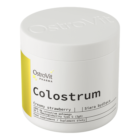 OstroVit Pharma Colostrum is a high-quality dietary supplement that is a source of dried bovine colostrum containing 30% immunoglobulin G. It is a preparation from the elite OstroVit Pharma line, with a simple composition and a delicious taste of creamy strawberry, available in a convenient powder form. This is a product created for conscious consumers who care about supporting the functioning of the body.