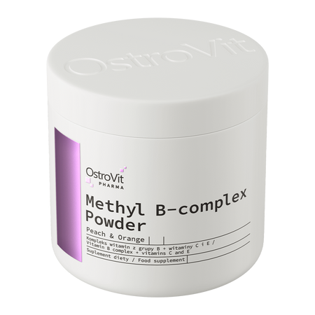 OstroVit Pharma Methyl B complex is a high-quality dietary supplement that contains a set of 14 valuable ingredients - In the product you can find, i.a. B vitamins, inulin or para aminobenzoic acid (PABA). This is preparation from the elite OstroVit Pharma line with delicious peach and orange flavor, available in powder form. It is a product created for conscious consumers who want to supplement their daily diet with valuable ingredients.