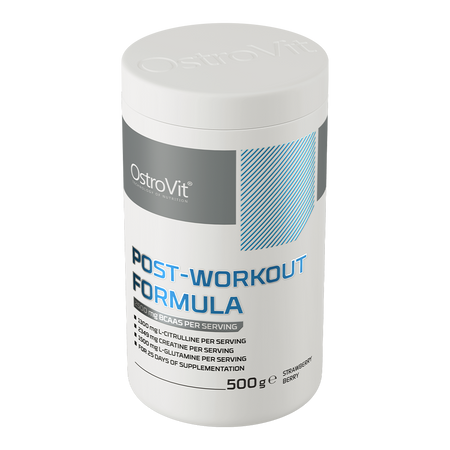 OstroVit Post-Workout Formula is a comprehensive dietary supplement that contains a unique formula of amino acids, electrolytes, as well as vitamins and minerals. It is a post-workout available in powder form, in two unique flavours variants. It is a product without added sugar, designed for athletes and physically active people who care about post-workout support for the body.