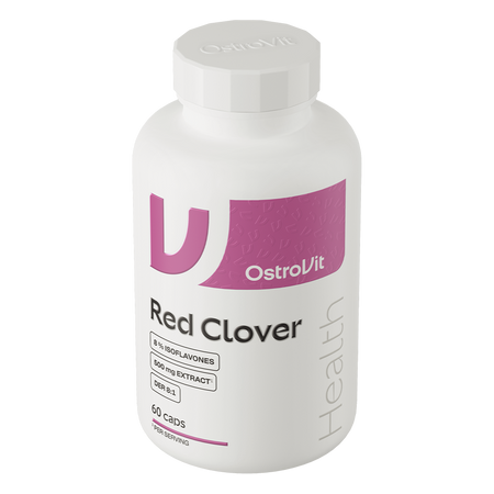 OstroVit Red Clover is a high-quality dietary supplement that contains red clover extract standardized for isoflavone content. It is a preparation from elite OstroVit Pharma line, available in the form of easy-to-swallow capsules. It is a product created for conscious consumers who want to supplement their diet with valuable compounds.