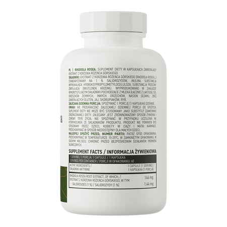 - Source of Rhodiola rosea extract - One serving of the dietary supplement provides the body with 144 mg of Rhodiola rosea extract standardized to 1% salidrosides.