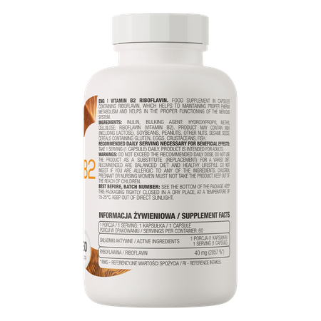 OstroVit Vitamin B2 Riboflavin is a high-quality dietary supplement that is a source of riboflavin. It is a preparation available in the form of easy-to-swallow capsules, created for people who want to supplement their daily diet with a valuable micronutrient.
