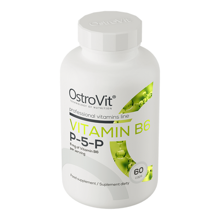 Vitamin B6, also known as pyridoxine, is a water-soluble component, belonging to B vitamins, which must be supplied to the body from the outside, because the body is not able to synthesize it on its own. The compound can be found primarily in whole grain cereal products, as well as in offal and dry legumes and in dietary supplements. OstroVit uses vitamin B6 in the form of pyridoxal-5'-phosphate, i.e. a chemically active form of the compound, which is distinguished by high bioavailability in the human body, which has a positive effect on the quality of the dietary supplement.
